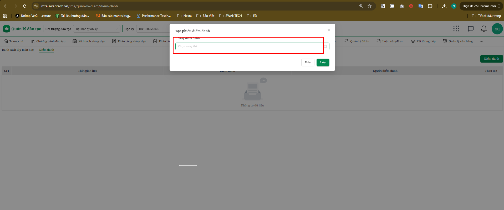 Tạo phiếu điểm danh: Mong muốn ngày điểm danh mặc đinh là ngày hiện tại